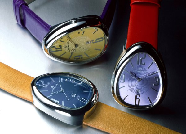 I modelli ''a goccia'' non tradiranno certo le aspettative dei clienti della celebre casa orologiera; la forma della cassa viene sottolineata dal delicato motivo centrale del quadrante che ne riprende la linea ed esaltata dall'accattivante contrasto di colori con il cinturino: al quadrante viola viene abbinato il cinturino rosso, a quello blu il cinturino giallo per continuare in un variopinto gioco di combinazioni. Il particolare carattere delle cifre dei quarti così come gli indici a bastone aggiungono un ulteriore tocco di originalità a questo segnatempo.